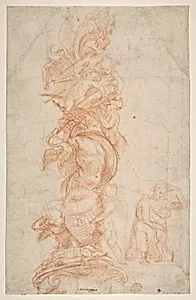 Design for the Decoration of a Pilaster (recto); Putti with Trophies and Seated Figure with Child (verso)