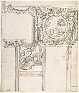 Design Wall Elevation with Stucco and Painted Decorations by Luigi Garzi