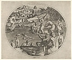 Diana and Her Nymphs Pursuing a Stag, from "Three Prints on Hunting and Fishing"