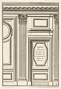 Door and Part of the Wainscot in the restored Salon of the Trianon Palace, plate IV from the Series 'Portes a Placard et Lambris', published as part of 'L'Architecture à la Mode'