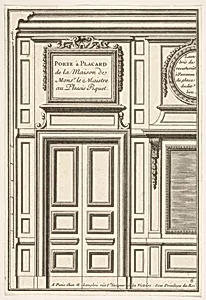Door and Part of the Wall Paneling with Mirrored Glass from the House of 'Monsieur le Maître' at Plessis Piquet, plate VI from the Series 'Portes a Placard et Lambris', published as part of 'L'Architecture à la Mode'