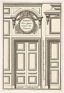 Doors of the Trianon Appartments plate III from the Series 'Portes a Placard et Lambris', published as part of 'L'Architecture à la Mode'