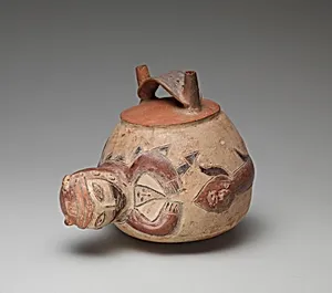 Double-spout bottle with monkey by Paracas artist(s)