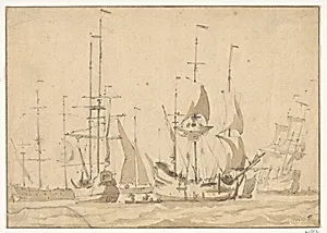 Dutch Merchant Ships at Anchor or under Easy Sail in a Moderate Breeze