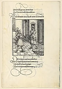 Ehrenhold Delivering Ehrenreich's Message to Theuerdank, from [Theuerdank] Die geuerlicheiten vnd einsteils der geschichten des loblichen streytparen vnd hochberümbten helds vnd Ritters herr Tewrdannckhs