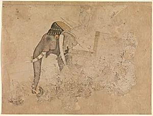 Behold the delicate "Elephant and Rider," a captivating drawing by the artist Hashim, created around 1640. Rendered in ink and watercolor paper, this intimate work measures just 6 by 8 inches, exemplifying the refined scale of Islamic manuscript illustrations and album leaves. Housed in the Metropolitan Museum of Art's of Islamic Art, it a rider atop a majestic elephant, evoking grandeur of royal processions and the animal's symbolic power in South Asian and Persianate cultures. In the 17th century, such drawings were prized in courtly circles, often detached from larger manuscripts to form p...