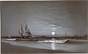 David Johnson Kennedy's *Entrance to Harbor—Moon* (1881) captures a serene nocturnal seascape, evoking the quiet drama of ships navigating into a harbor under a luminous moon. This American artwork, housed in The Metropolitan Museum of Art's American Wing, reflects the 19th-century fascination with maritime scenes, blending natural beauty with human endeavor. Painted during a period when American artists increasingly explored light and atmosphere, Kennedy's composition highlights the moon's glow illuminating waves and vessels, a nod to the Romantic tradition of seascapes that celebrated the su...