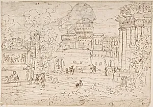 Fantasy based on Vatican: Sistine Chapel, Loggia (identification by James S. Ackerman) (recto); A Lion (verso)