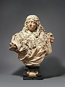 Behold the commanding marble bust of *Ferdinando de', Grand Prince of Tuscany crafted by the Florentine Baroque master Giovanni Battista Foggini 1680–82. Carved from both white and gray marble, this life-sized portrait (nearly 39 inches tall and weighing over 300 pounds) captures the young heir's noble poise and introspective gaze, with intricate detailing in his draped attire and flowing hair that exemplifies Foggini's virtuosic sculptural technique. Ferdinando (1663–1713), eldest son of Grand Duke Cosimo III de' Medici, embodied the enduring legacy of Florence's ruling dynasty, famed for Renaissance patronage but thriving into the Baroque era. Foggini, a key court artist, specialized in such grand portraits that blended classical idealism with dramatic realism, using contrasting marbles to heighten depth and texture—gray for shadows, white for highlights. This bust likely served as a symbol of Medici prestige in palatial settings. Acquired by The Metropolitan Museum of Art in 1993 through The Annenberg Foundation, it stands as a testament to 17th-century Italian sculpture's opulence, inviting visitors to ponder the fleeting glory of princely ambition amid Tuscany's artistic golden age.