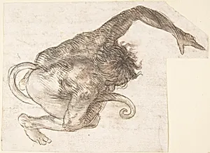 Figure of Fantastic Human-like Creature with Long Tail (recto); Fragment of a Letter or Document (verso)