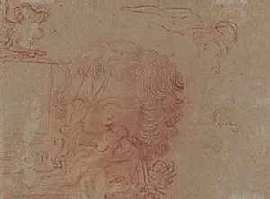 red chalk on brown laid paper, the sculpted head likely not by Watteau