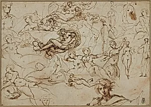 Figure Studies for Various Female and Male Figures (recto); Threes Amors in the Garden of Venus (verso)