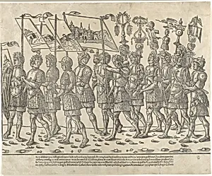 Figures carrying standards and trophies: from 'The Triumph of Caesar'