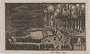 Firework display, Nuremberg 1649, reduced copy of 'Kurze Beschreibung dess kunstlichen Feuerwerkes ...'