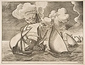 Fleet of Galleys Escorted by a Caravel from The Sailing Vessels by Frans Huys|Pieter Bruegel the Elder|Hieronymus Cock