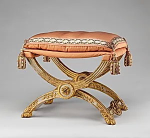 Step into the opulent world of late 18th-century France with this exquisite folding stool, or *pliant*, crafted in 1786 by a masterful team of Parisian artisans: Jean-Baptiste-Claude Sené, the renowned *menuisier* (cabinetmaker), alongside Nicolas François Vallois, Louis-François Chatard, and Chaudron. Produced during the lavish final years of the Ancien Régime, just before the French Revolution, this piece—one of a pair—exemplifies the neoclassical elegance favored by Louis XVI's court. Sené, who supplied furniture to Versailles, specialized in such refined seating, blending functionality wit...