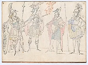 Four Actors in Heroic Costume, with a Study of a Helmeted Head