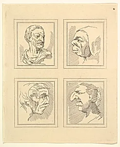 Four Heads (from Characaturas by Leonardo da Vinci, from Drawings by Wincelslaus Hollar, out of the Portland Museum)