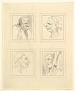 Four Heads (from Characaturas by Leonardo da Vinci, from Drawings by Wincelslaus Hollar, out of the Portland Museum)