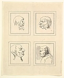 Four Heads (from Characaturas by Leonardo da Vinci, from Drawings by Wincelslaus Hollar, out of the Portland Museum)