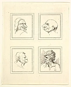 Four Heads (from Characaturas by Leonardo da Vinci, from Drawings by Wincelslaus Hollar, out of the Portland Museum)
