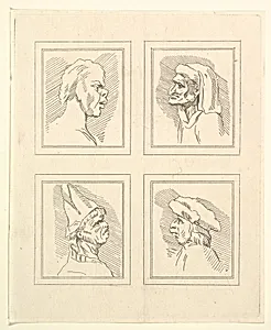 Four Heads (from Characaturas by Leonardo da Vinci, from Drawings by Wincelslaus Hollar, out of the Portland Museum)