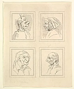 Four Heads (from Characaturas by Leonardo da Vinci, from Drawings by Wincelslaus Hollar, out of the Portland Museum)