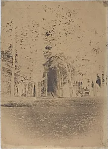 Step into the serene **Gardens of the Château Saint-Cloud**, captured around 1853 by French photographer Louis-Rémy Robert This paper negative beautifully documents the lush landscapes of the historic estate near Paris, once a favored retreat for French royalty. The Château de Saint-Cloud's gardens, with their manicured trees and expansive grounds, symbolized the grandeur of 19th-century French horticulture, blending natural beauty with architectural elegance. As a rare surviving paper negative—measuring 32.6 x 23.8 cm—this work highlights the pioneering calotype process popular in France dur...