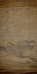 "Geese and Lotus Leaves is a captivating hanging scroll painted in ink on silk, likely from China's Ming (1368–4) or Qing (1644–1911). Attributed possibly to the renowned Ming artist Lin Liang, a master of bird-and-flower paintings, work exemplifies the elegant tradition of *hua niao* ( and birds) art. Measuring 37½ × 18⅞ inches, it was acquired through the Rogers Fund in 1930 and now the Metropolitan Museum of Art's Asian Art collection. In Chinese painting, hanging scrolls like this were designed for contemplation, unrolled for private viewing to evoke nature's harmony. The minimalist ink t...