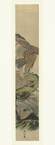 Gevecht tussen een havik en een aap by Suzuki Harunobu