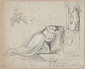 Gretchen in Prayer before a Statue of the Mater Dolorosa (recto); Studies of a Woman and Man's Head (verso)