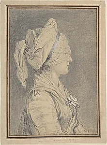 In the elegant world of 18th-century French draftsmanship, Augustin de Saint-Aubin's *Half Figure of a Woman a Cap, in Profile Right* (1770) captures the delicate charm of Rococo portraiture. Saint-Aubin, a prolific engraver and member of the renowned Saint-Aubin family of artists specialized in intimate studies of fashion, daily life, and the female form. This graphite drawing, heightened with white for luminous highlights, depicts a woman in strict profile, her cap evoking the refined headwear of the ancien régime, offering a glimpse into the poised femininity of pre-Revolutionary France. T...
