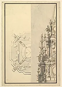 Half Plan and Half Elevation for a Catafalque for Margarita Louisa, Gran Duchess of Tuscany (d. 1721)