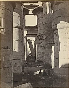 Step into the majestic Hypostyle Hall at Karn in Upper Egypt through Adolphe Braun's captivating *Haute-Egypte, Salle Hypostyle à Karnak* (ca. 1870). This albumen silver print, now in the Metropolitan Museum of Art's Photographs Department, immortalizes the temple complex's iconic forest of towering papyriform columns—some rising over 20 meters high—carved with intricate hieroglyphs from ancient Egypt's New Kingdom era (ca. 1550–1070 BCE). Braun, a pioneering French photographer, expertly framed the ruins to evoke their awe-inspiring scale and weathered grandeur. Created during the height of ...