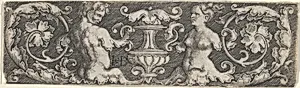 Horizontal Panel with a Half-Length Man and Woman Facing a Vase at Center
