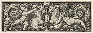 Horizontal Panel with Two Genii Riding on Two Chimeras