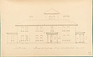 Step into the elegant world of 19th-century American architecture with Jackson Davis's *House of R. Dabney, Powhatan, Virginia ( [rear] side)*, created in 1858. This delicate ink and wash drawing captures the rear facade of a Virginia plantation house, rendered on a modest sheet measuring 9 1/8 x 13 5/8 inches., a pioneering architect and draftsman, often sketched such residences to document and idealize the built environment of the antebellum South. A master of the Greek Revival and Gothic Revival movements, Davis infused his works with romantic precision, blending classical symmetry with pi...