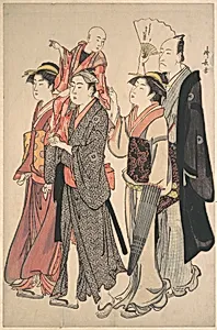 Torii Kiyonaga, born Sekiguchi Shinsuke in 1752 in Uraga, Sagami Province, was the son of an Edo bookseller who owned tenements near a bustling fish market. At age 14 in 1765, he began his apprenticeship under Torii Kiyomitsu, the third-generation head of the prestigious Torii school of ukiyo-e, renowned for kabuki theater illustrations and signage. Adopted into the Torii family, Kiyonaga succeede...