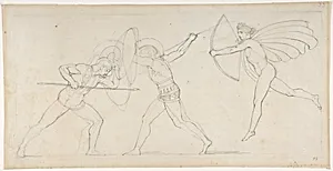 Illustration for "Seven Chiefs Against Thebes" (recto); Studies of Figures (verso)