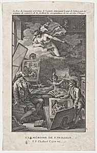 **In Memory of P. Fr. Basan**, a delicate engraving by Pierre Philippe Choffard from 1798, serves as a poignant tribute within the catalogue of the esteemed collection belonging to P.-F. Basan, a prominent French printmaker and dealer. Measuring just 7 9/16 × 4 3/4 inches, this intimate sheet captures the refined elegance typical of late 18th-century French printmaking. Choffard, a master illustrator active during the Rococo and early Revolutionary eras, crafted it shortly after Basan's death in 1797, highlighting the personal and professional bonds in Paris's vibrant art world. Engraving, Ch...