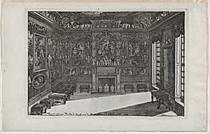 Interior of a Porcelain Cabinet with Paintings and Vases, from Nouveaux Liure da Partements, part of Œuvres du Sr. D. Marot