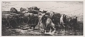 Charles-Émile Jacque (1813–1894) was a pioneering French painter, engraver, and illustrator whose career bridged the worlds of printmaking and pastoral painting. Born in Paris amid a difficult childhood, he apprenticed at age seventeen to a map engraver, mastering drypoint technique and producing his first etching in 1830—a copy of a head after Rembrandt. After serving seven years in the French Ar...