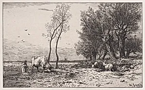 Charles-Émile Jacque (1813–1894) was a pioneering French painter, engraver, and illustrator whose career bridged the worlds of printmaking and pastoral painting. Born in Paris amid a difficult childhood, he apprenticed at age seventeen to a map engraver, mastering drypoint technique and producing his first etching in 1830—a copy of a head after Rembrandt. After serving seven years in the French Ar...