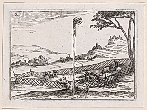 Jacques Callot (1592–1635) was a French printmaker and draftsman from the Duchy of Lorraine, widely regarded as one of the first great artists to practice the graphic arts exclusively. His more than 1,400 etchings chronicled the breadth of 17th-century life, from Medici court festivities to the brutal realities of warfare. Callot revolutionized etching through technical innovations including the é...