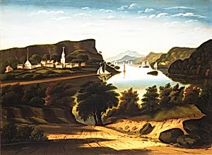 Thomas Chambers' *Lake George and the Village Caldwell* (ca. 1850s) invites viewers into a serene slice of mid-19th-century America. This oil on canvas, measuring 22½ x 30½ inches, captures the tranquil beauty of New York's Lake George—long celebrated as the "Queen of American Lakes"—with its shimmering waters, distant village nestled along the shore, and scattered boats dotting the horizon. Painted during a time when Americans embraced their expanding wilderness through art, the work reflects the era's growing fascination with native landscapes as symbols of national pride. Chambers, a Briti...