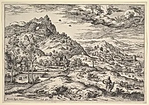 Hieronymus Cock, born Hieronymus Wellens de Cock in Antwerp in 1518, emerged from a distinguished artistic lineage; his father, Jan Wellens de Cock, and brother, Matthys Cock, were both accomplished painters and draftsmen. Admitted as a master painter to Antwerp's Guild of Saint Luke in 1545, he honed his skills in the vibrant Netherlandish tradition before traveling to Rome from 1546 to 1547, whe...