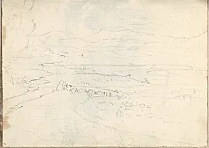 Landscape with River, Arched Bridge and Distant Mountains (Smaller Italian Sketchbook, leaf 39 recto)