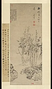 Dong Qichang (1555–1636), born in Huating in present-day Shanghai's Songjiang region, emerged from a scholarly yet impoverished family as the son of a local school teacher. A precocious child, he passed the prefectural civil service examination at age twelve, securing entry to a government school, and later sat for the imperial exams, placing second at seventeen to his cousin due to inferior calli...