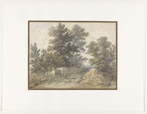 Landweg met geboomte en boerenkar