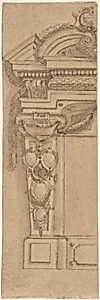 Left Half Design for Wall Monument with Escutcheon Motif